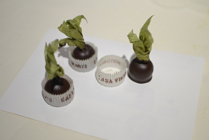 Chinese lanterns (or Alkekengi here in Italy) dipped in chocolate.