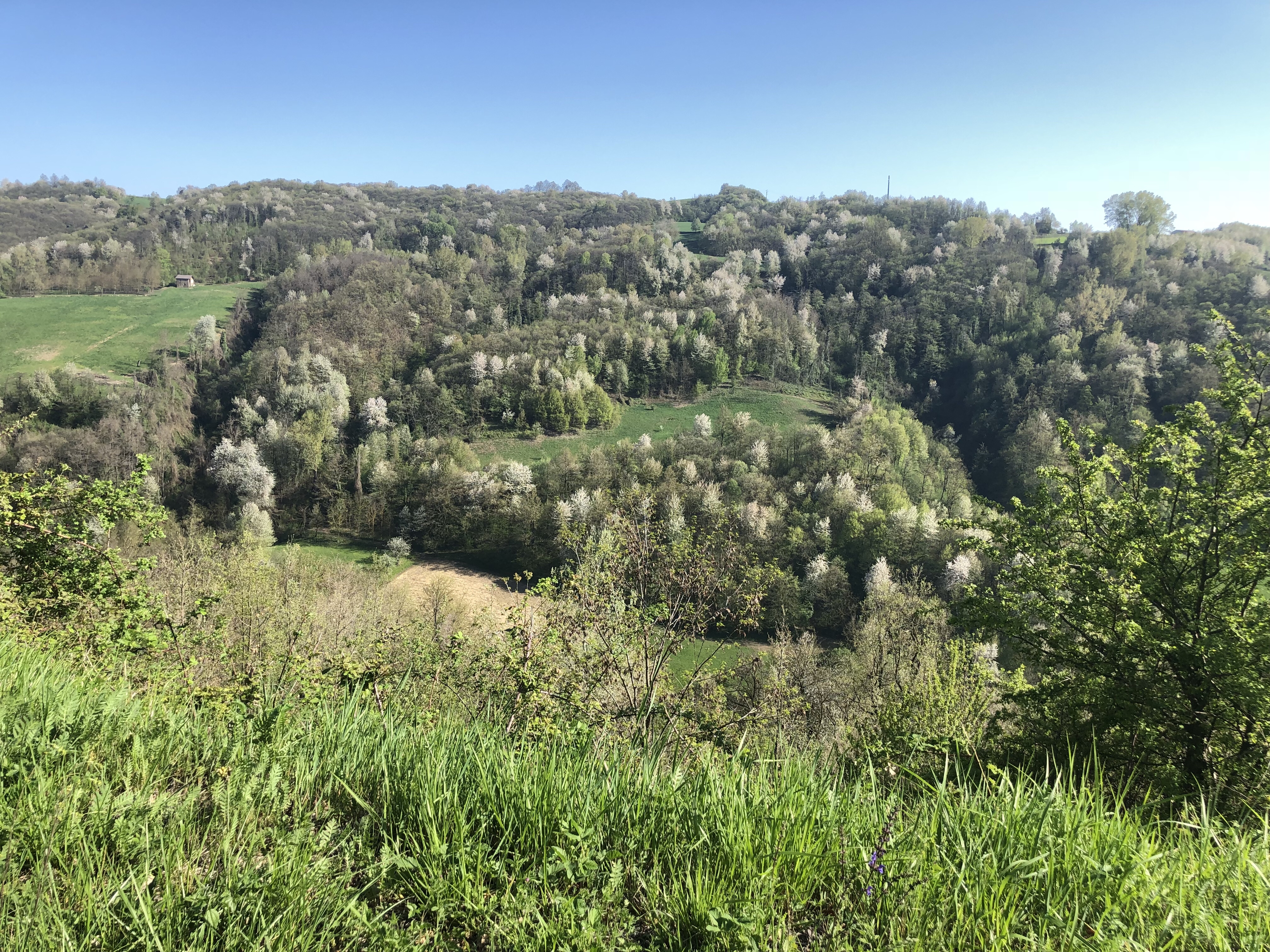 Ancora una bella vista dell’Alta Langa oggi: con gli alberi in fiore! Paesaggio dalla bellezza struggente.