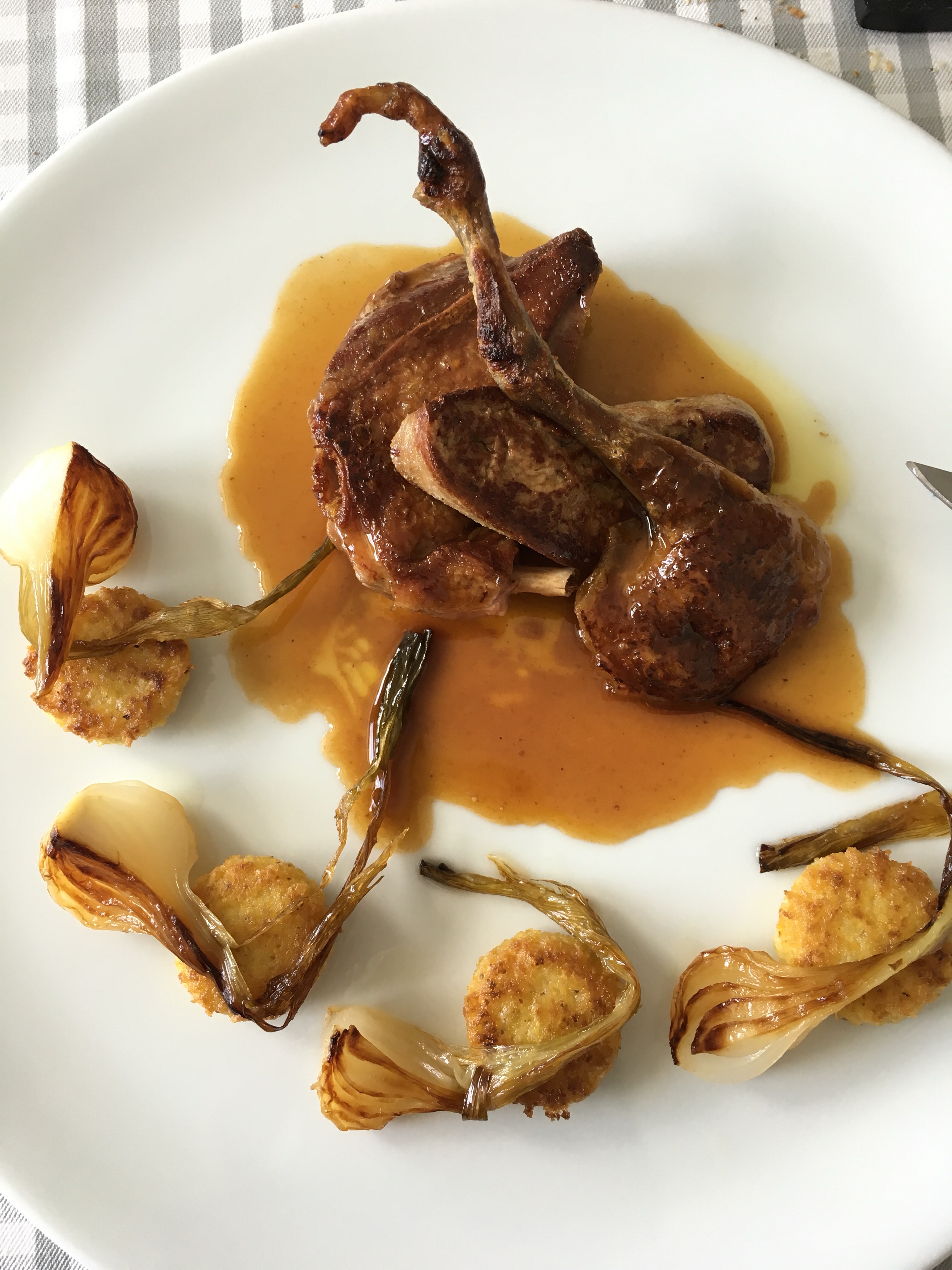 -29.06.2016. Degustato con Luca Duelli. Piccione alla Rossini. Perfetto, petto, coscia, foie, cipollotti brasati, bottoni di polenta piastrati e…un fondo di cottura da sogno!