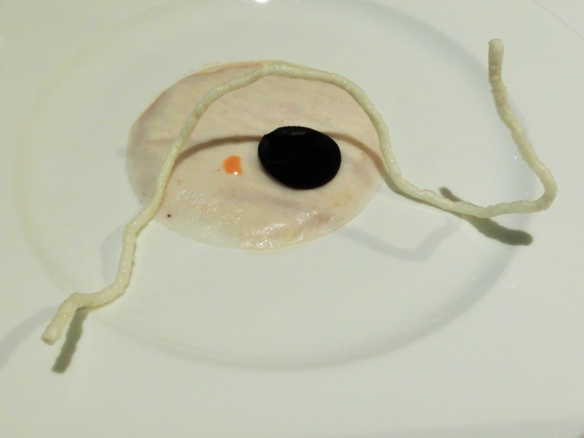 In realtà si tratta di un Pithiviers salato preparato con rara maestria: grande cultura ed ottima tecnica. Il beurre blanc è perfetto ed appena aromatizzato all’anice. Subito una bella emozione. Inoltre è servito su antico piatto Richard Ginori: La Classe!