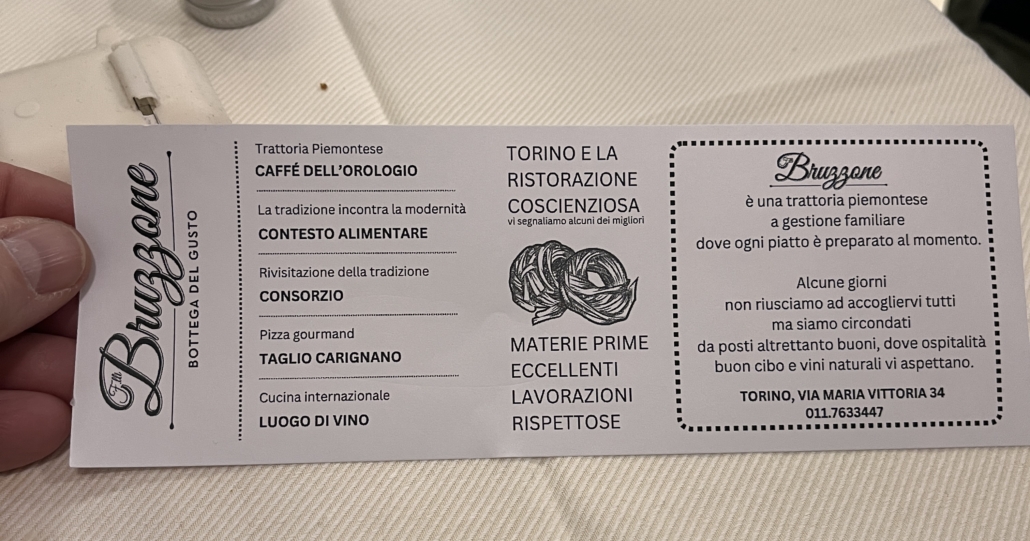 Come è scritto sul volantino: ‘Torino e la ristorazione coscienziosa, materie prime eccellenti, lavorazioni rispettose’.
