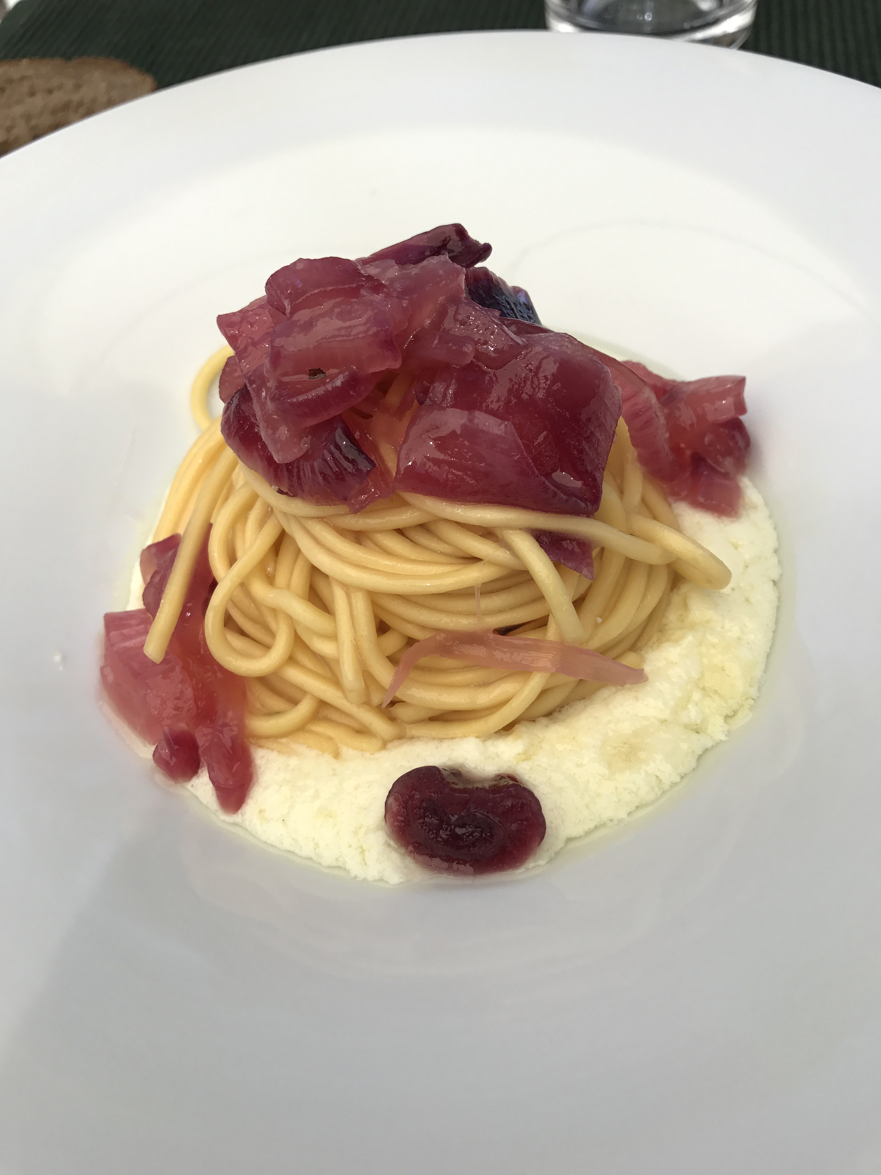 -Tagliolini appena fatti, ricotta di capra, cipolla in agrodolce.